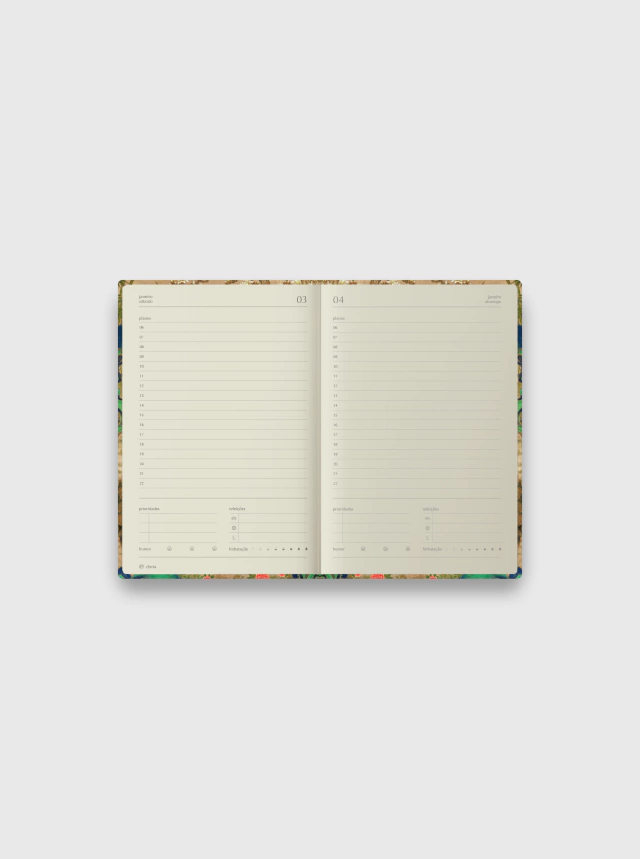 A linha folk essentials 2026 apresenta a agenda diária de 2026, a nossa opção mais completa de planejamento para seu ano, com um toque especial da nossa curadoria atemporal. A agenda diária é ideal para uma rotina organizada e equilibrada, com visão anual, mensal e diária com uma divisão horária completa, para você visualizar cada compromisso da rotina de forma leve e intuitiva.